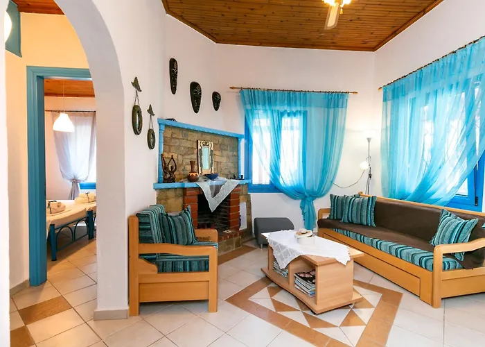 Deze 1-slaapkamer Villa Evis bevindt zich op 12 minuten van het Strand van Potos en beschikt over een terras met uitzicht op de berg.